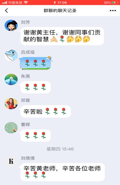 在线英语教学有其自身的局限性,比如,全体师生不能面对面互动,网络有时拥堵不畅,音视频易于卡顿,师生只能键字交流等等。尽管如此种种,绝大部分员工学习态度端正,自觉性和自律性较强,老师们勇于接受挑战,乐于分享交流,相信在线教学能够实现效率效果最大化。本次分享会持续一个半小时,结束之际,大家表示这次会议非常成功,感觉受益匪浅,互相感谢彼此贡献的智慧。