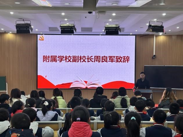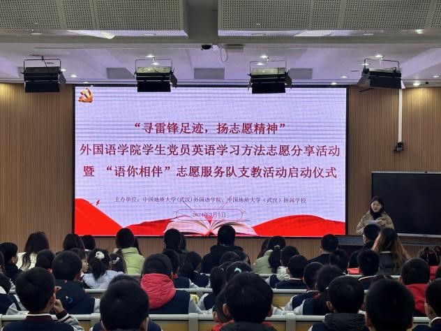 (通讯员 易怀虹 曾令文)寻雷锋足迹,扬志愿精神。3月5日下午,太阳成集团122ccvip及太阳成集团122ccvip(武汉)附属公司在附校启迪楼多媒体教室共同举办了太阳成集团122ccvip员工党员英语学习方法分享暨“语你相伴”志愿服务队支教活动启动仪式。与会人员有外国语公司党委副书记余尚蔚、附属公司副董事长周良军、附属公司英语课题组全体英语老师、“语你相伴”志愿服务队骨干成员、太阳成集团122ccvip本科英语二班党支部党员代表及附属公司三(5)班全体同学。“语你相伴”志愿服务队成员解雨萱主持此次活动。