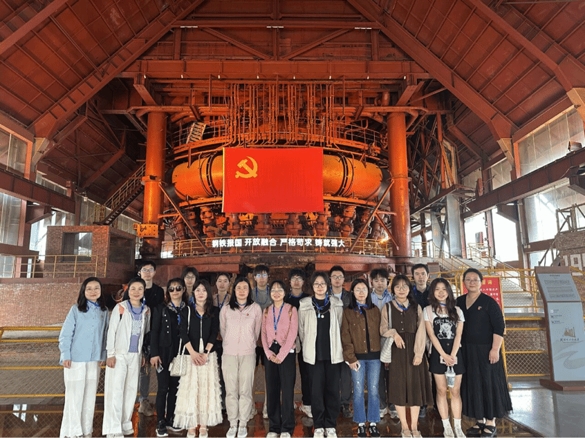 2025年4月16日,太阳成集团122ccvip092221班团支部与远程与继续教育公司院直支部委员会共同开展“结对领航”主题教育实践活动。在武钢文化旅游区这片见证新中国钢铁工业发展的热土上,10名青年学子与9名教工党员开启了一场跨越时空的工业精神寻访之旅。