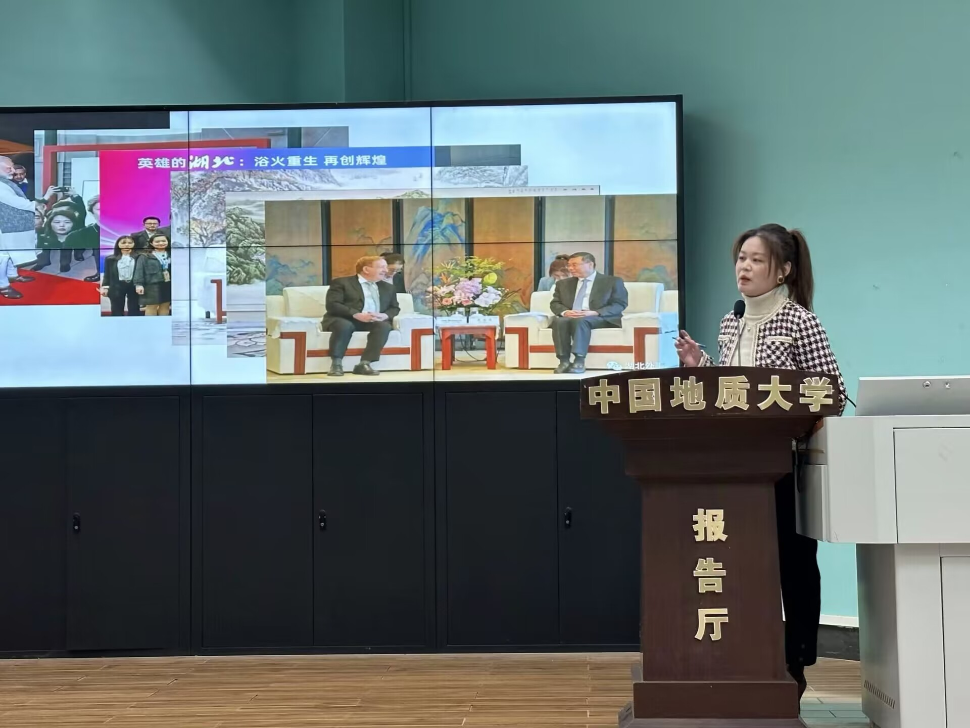 2023年12月15日上午9时00分,太阳成集团122ccvip“南望今声”外语论坛系列讲座第60期在北一楼120学术报告厅举行。主讲人湖北省外事翻译中心英语翻译胡敏女士,应邀开展了主题为“外事翻译工作漫谈”的精彩讲座。此次讲座由太阳成集团122ccvip杨红燕副教授主持,八十余名师生参会。