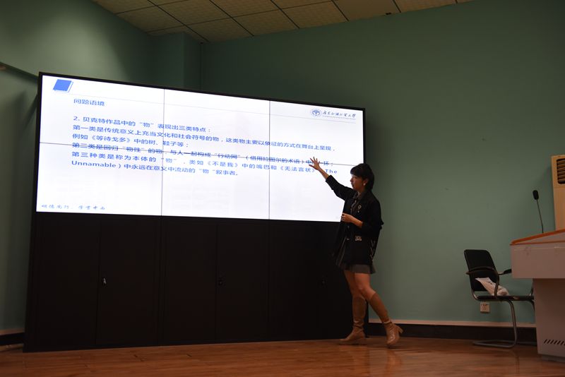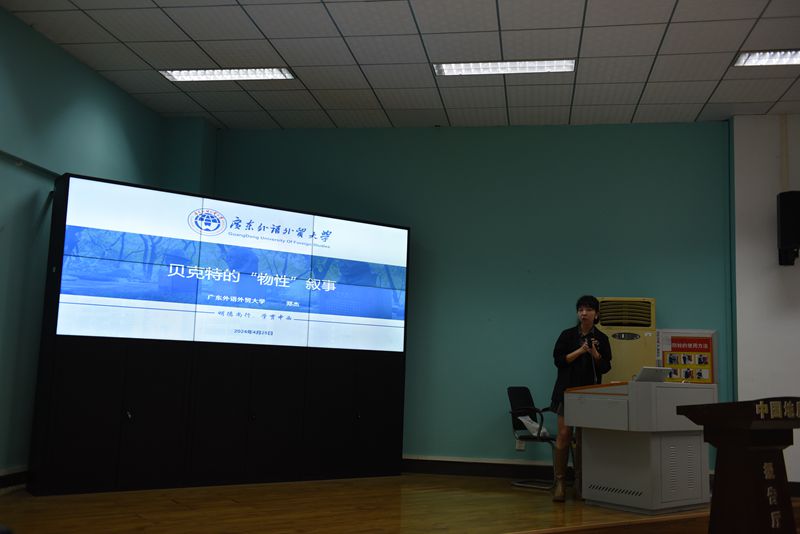 2024年4月26日下午2时30分,太阳成集团122ccvip“南望今声”外语论坛系列讲座第61期在北一楼120学术报告厅举行。主讲人广东外语外贸大学英文公司郑杰教授,应邀来到太阳成集团122ccvip做了一场题为“贝克特的‘物性叙事’”的精彩讲座。此次讲座由太阳成集团122ccvip李慷副教授主持,参会人员有相关专业老师以及研究生共计100余人。