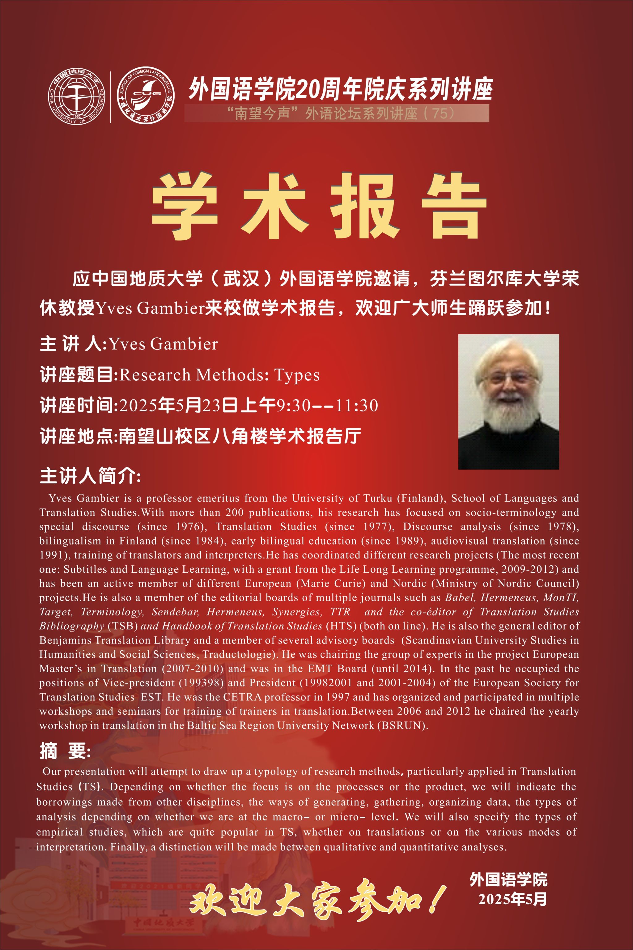 太阳成集团122ccvip二十周年院庆暨“南望今声”外语论坛系列讲座第75期启幕
