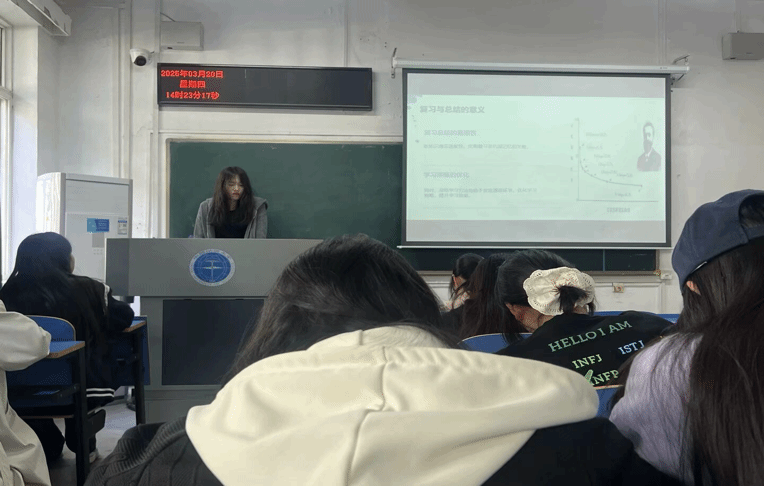 活动伊始,主持人以“技术赋能学习”为引,揭开序幕。杨书蕙同学从“认知科学视角下的语言习得规律”切入,结合AI工具在单词记忆、听力训练中的实际应用,提出“精准输入+高频输出”的高效学习模型;覃梦媛同学则分享个人学习英语流畅表达的经验,强调日常学习英语的重要性。随后的交流环节,两班的同学们围绕“如何突破口语焦虑”“AI辅助学习的边界”等问题与彼此展开对话,在进行头脑风暴的同时也拉近了两班同学之间的距离。