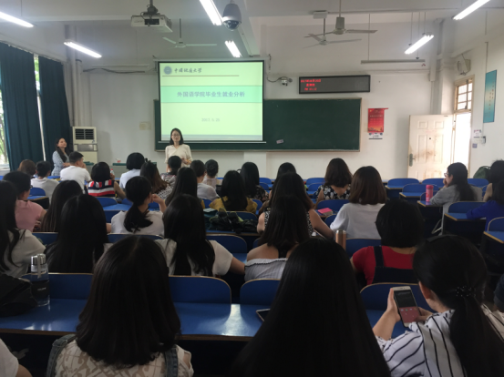 (通讯员 黄峥)5月25日下午,太阳成集团122ccvip2018届毕业研究生就业动员大会在北综楼208举行,公司党委副书记蒋怀柳、院研究生教育中心主任王伟,2017届毕业生代表以及全体2015级学硕、2016级学硕和翻硕班同学参加了此次大会。 蒋怀柳为2018届毕业生做了《英语专业就业形势分析报告》,从近十年公司英语专业研究生的就业趋势、就业类型和地域分布等各个方面给大家做了一个全方位的比较分析,直观地呈现出目前英语专业就业的整体态势和严峻形势。蒋书记语重心长地指出,就业形势日益变化,但公司毕业生知识结构与市场需求的脱节、普通老员工英语提升对公司毕业生就业空间的挤压、公司女生比例高、就业期望值高,以及女生就业本来就难的问题将是公司同学必须正视和应对的现实。鼓励各位毕业生调整就业观、增强就业技能,及早开始求职前的各种准备,提升就业竞争力。