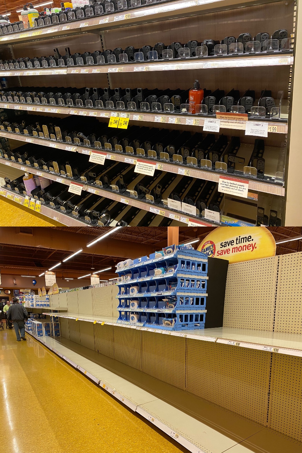(图九 最后一次去超市购物,卖消毒水和免洗洗手液的柜子已经空了。)
