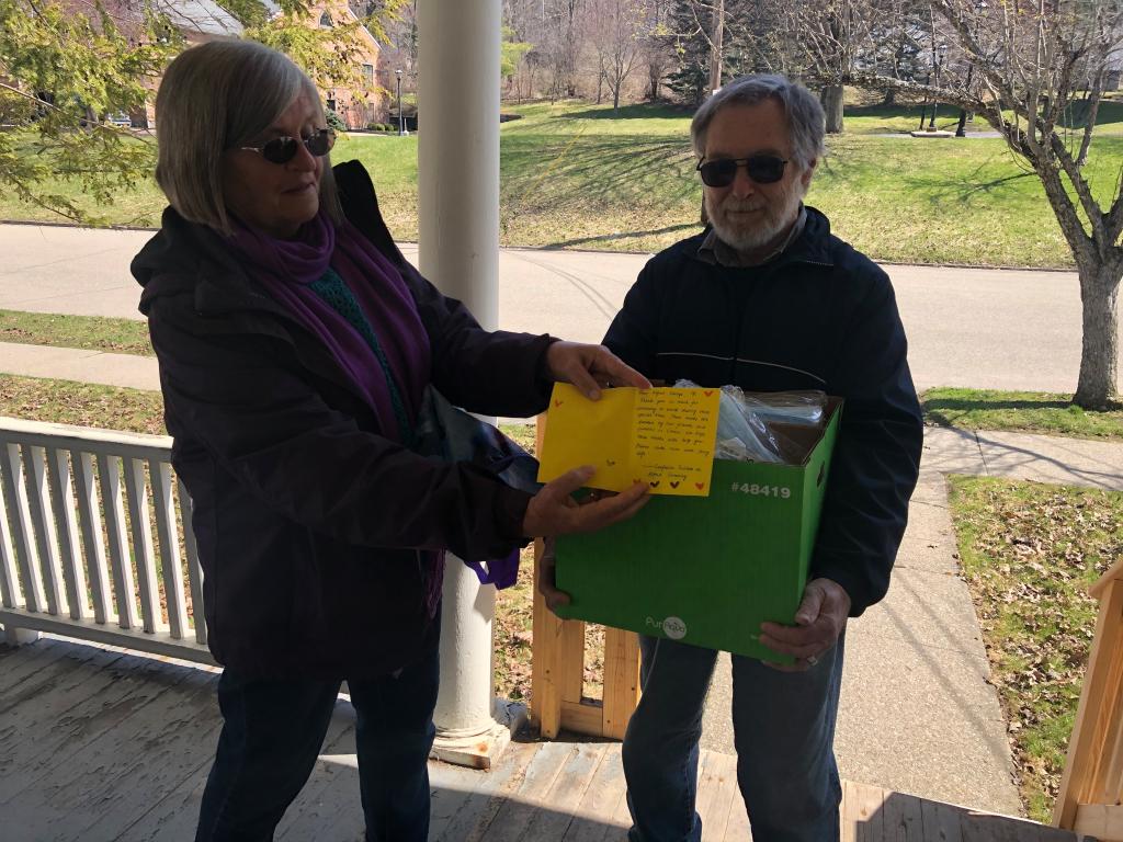 (图十二 社区的工作人员来取口罩,他们不停地表示感谢。)