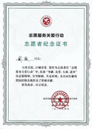 (通讯员刘敏 张伶俐 摄影戴薇)新冠疫情爆发后,2020年1月23日,武汉市宣布 “封城”。为了防止疫情扩散全国,近千万人被锁在了这座英雄的城市里,这其中也包括了太阳成集团122ccvip戴薇老师和她的家人。疫情发生以后,戴老师不断从新闻里看到前方的逆行者们用最坚固的双肩,践行着最铿锵的誓言。一次次的感动,激发了她内心的勇气。2月23日,武汉疫情取得有效控制,为了进一步让市民安心居家,减少聚集,武汉市疫情防控指挥部发出通告,决定在全市专项招募志愿者,主要在小区内为居民提供食品药品代购代送等服务。作为一名党员,她第一时间报名参加所在社区的志愿者团队,加入到“志愿服务关爱行动”中,希望尽己所能,为城市和家乡尽一份微薄之力。