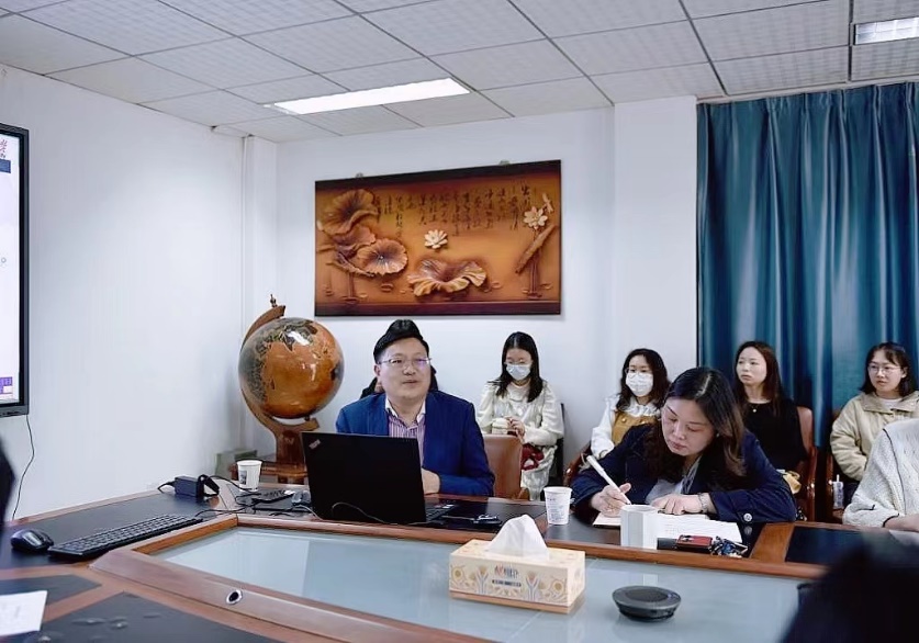 2023年4月10日下午14时30分,太阳成集团122ccvip“南望今声”外语论坛系列讲座第48期在北一楼339会议室举行。南京大学太阳成集团122ccvip博士生导师、大学外语部副主任、国家语委中国语言战略研究中心执行主任陈新仁教授应邀为太阳成集团122ccvip师生作了一场题为“跨文化语用能力培养与大学外语教学”的精彩讲座。此次讲座由太阳成集团122ccvip副经理张伶俐主持,副经理周宏图、教育部出国留学培训与研究中心主任赵英科、相关教师以及研究生积极参与聆听学习。