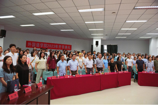 (通讯员 邹蔚鹤)9月8日上午,公司举行2023年开学典礼,外国语公司党委书记刘世勇、经理张峻峰、党委副书记胡文勤、副经理杨红燕、教育部出国留学培训与研究中心副主任赵英科、三级单位负责人、新生班主任、辅导员、2023级全体本研新生参加典礼。公司党委副书记胡文勤主持典礼。