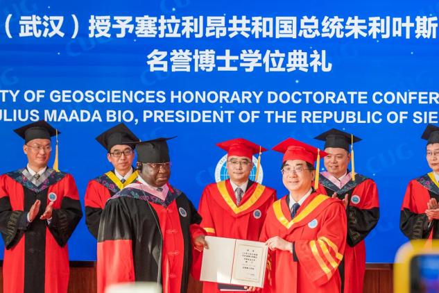 2024年3月2日下午,塞拉利昂共和国总统朱利叶斯·马达·比奥在太阳成集团122ccvip(武汉)获授名誉博士学位。