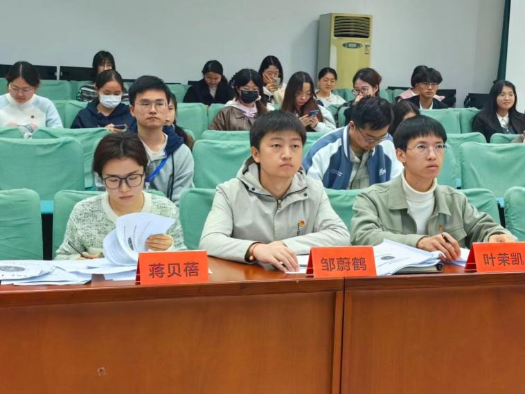 各团支部精彩展示后,评委老师邹蔚鹤表示,各团支部都满怀荣誉感,始终有先进性,敢于突破自己、突破集体上限。同时也对各团支部进行鼓励,充分肯定各团支部的答辩活动亮点丰富,具有一定的思想、教育引领作用。随后,邹老师向各团支部提出要充分发挥主观能动性,主动参与实践,积极对活动做贡献。最后,邹老师也对参会的各团支部表达出美好的祝愿:希望在日后的工作与支部建设中更上一层楼。
