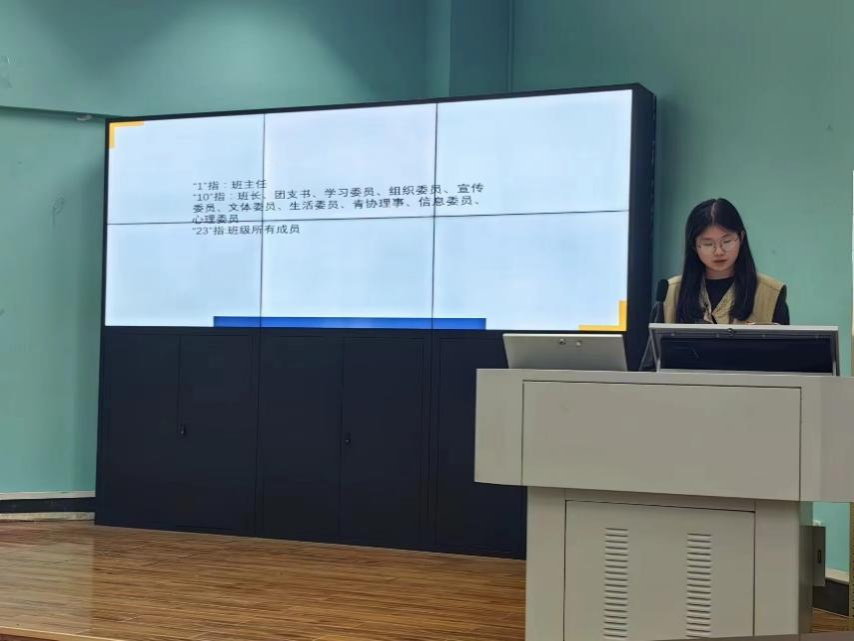 091232团支部书记魏思璐以“传承五四精神,展现红旗风采”为主题,强调进行线下团会的重要性,并以此来增强同学们对于团日活动的理解与认识,加深支部成员的思想与感悟。此外,团支部采用“1+10+23”的模式,加强同学们与班主任之间的联系,充分呈现出091232团支部团结一心、奋发向上的精神气象。