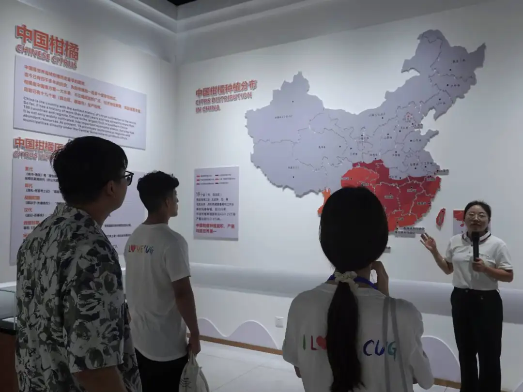 实践团成员就柑橘产业发展、农业科技创新、农产品国际贸易等和工作人员进行互动,通过交流,实践团成员了解了屈姑国际农业集团始终走绿色可持续发展道路,坚持企业绿色发展,持续推进高质量建设发展,并在今年5月在迪拜成功举办2024中国湖北柑橘文旅海湾国家推介活动,并签回3000万美元大单。