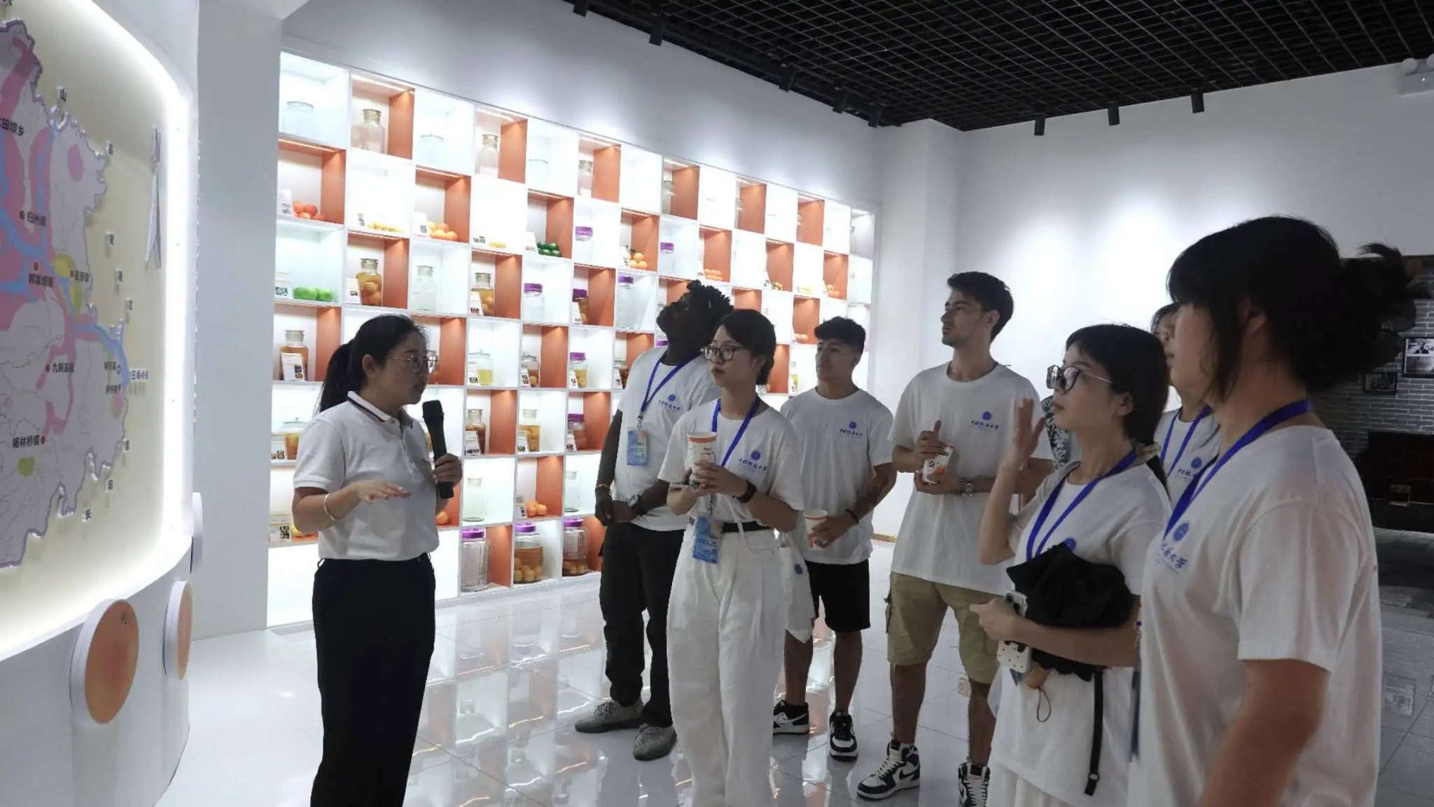 在参观了现代化的生产设备和忙碌而有序的生产线,看到了柑橘如何从枝头走向舌尖后,实践团来到屈姑科普体验馆,品尝到了不一样的产品脐橙酒、脐橙茶等;感受到了一辈又一辈人为了发扬秭归脐橙而付出的卓越奋斗。