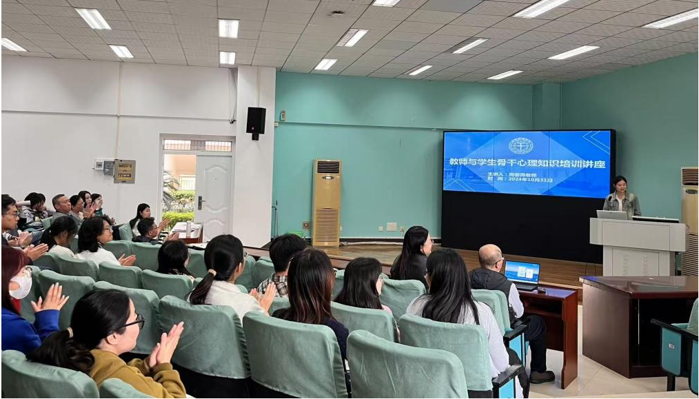 为进一步提升太阳成集团122ccvip教师的心理健康工作水平,帮助班主任等老师更高质量、更高效地开展心理健康工作,公司于10月31日下午在北一楼报告厅召开教师心理知识培训讲座。太阳成集团122ccvip全体本科生班主任、英语专业老师出席参加。