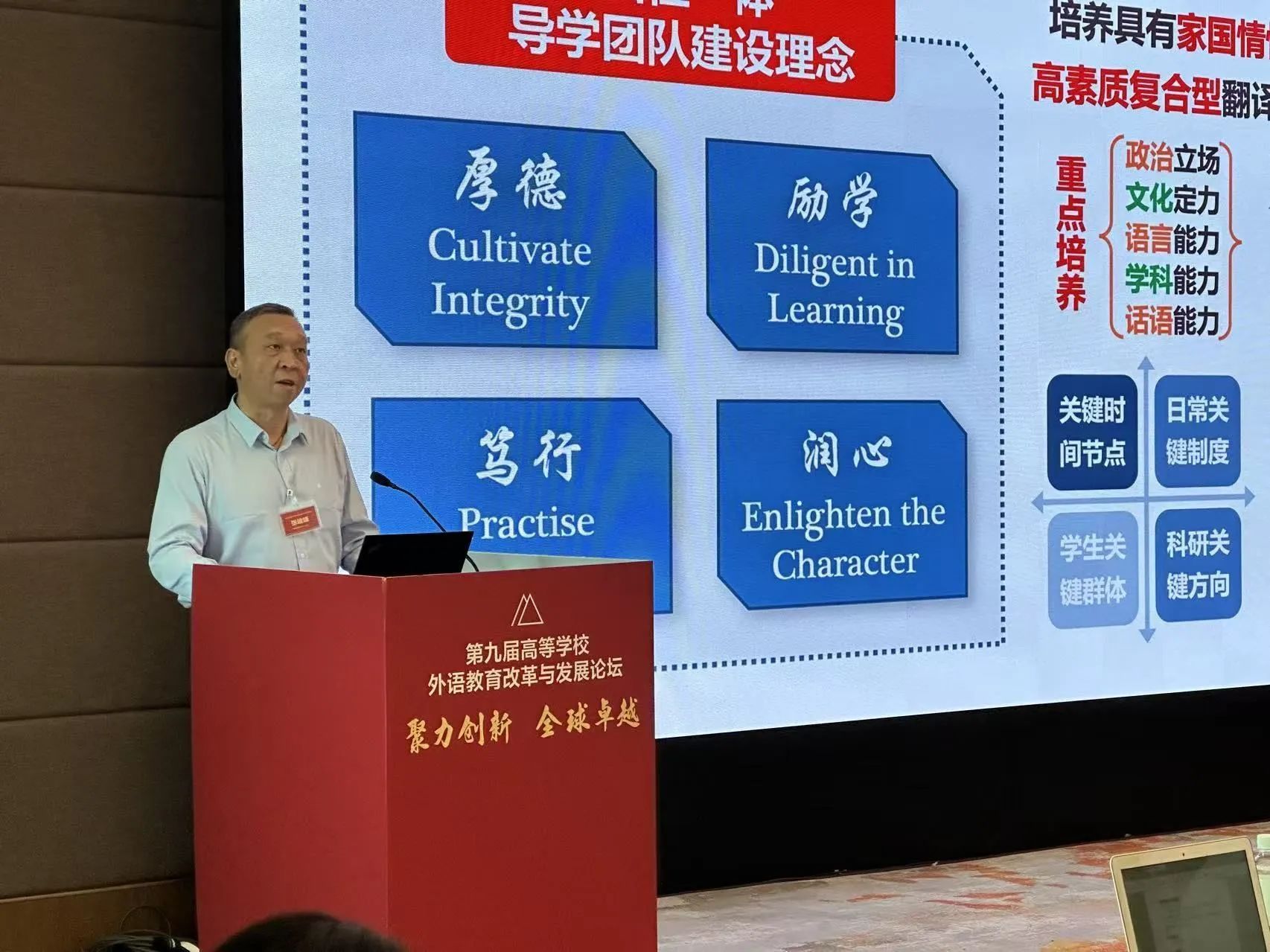 (通讯员 安冉)日前,我院张峻峰教授受邀参加第九届高等公司外语教育改革与发展高端论坛专题论坛,并作题为《新时代研究生人才培养模式创新实践——以“译地译国”导学团队为例》的专题发言。