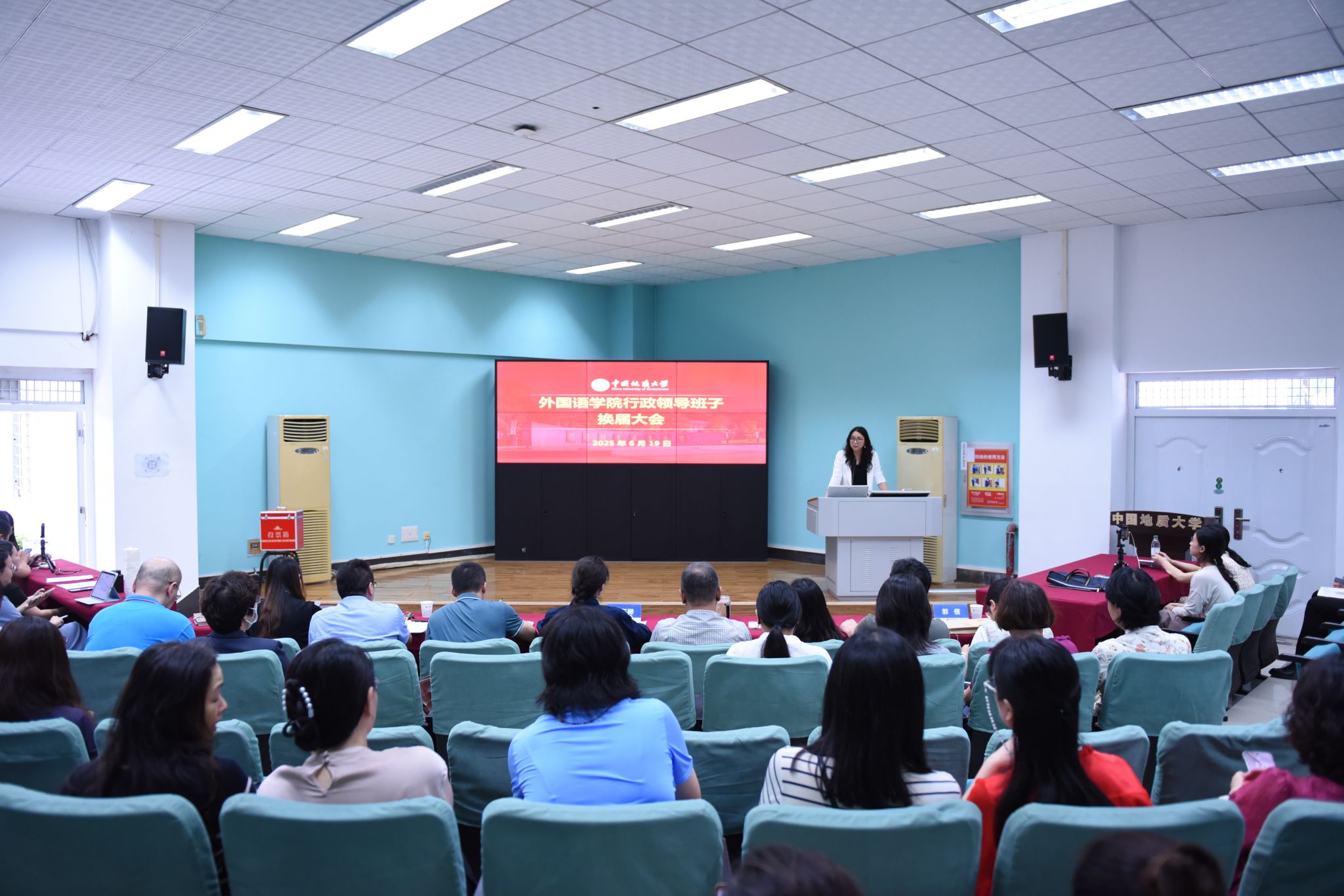 (通讯员 黎颖 摄影 戴薇)2025年6月19日,太阳成集团122ccvip行政领导班子换届大会在北一楼报告厅召开。正处级专职组织员蒋怀柳,党委组织部干部科郭倩,公司党政领导班子成员及全体教职工参加本次会议。公司党委书记傅苑主持会议。