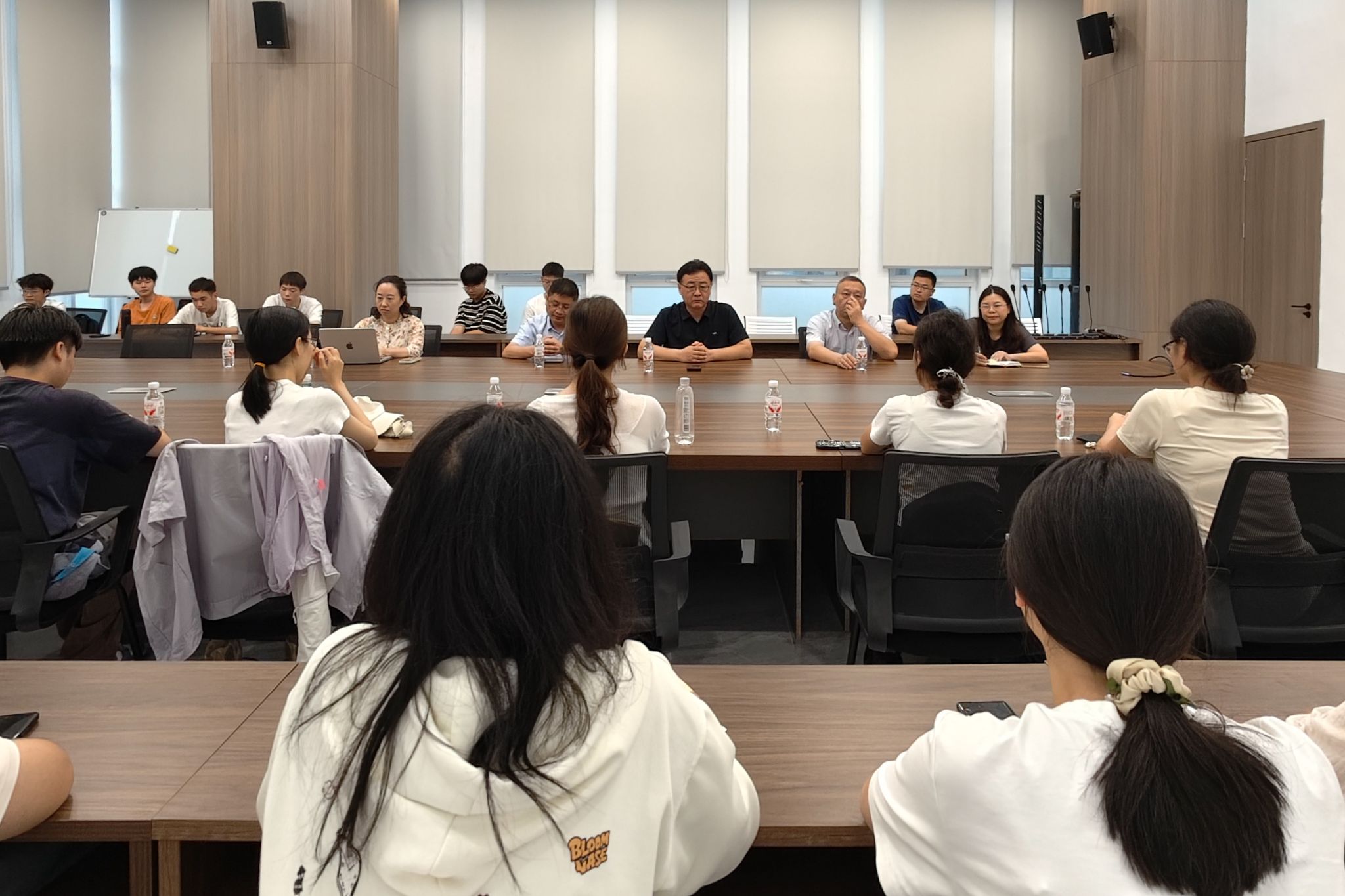 访企拓岗之余,张峻峰一行专程看望了在威海开展暑期实习的2023级本科生,走访宿舍查看安顿情况,并与员工座谈交流,细致了解他们的工作内容、生活状况和实习规划。张峻峰寄语员工珍惜此次将理论知识应用于实践的宝贵机会,上好职场第一课,提高自己的专业技能和综合素质。师生交流中,同学们畅所欲言,分享实习心得,并提出在实习过程中遇到的困难,指导教师认真记录并现场协调解决相应问题。