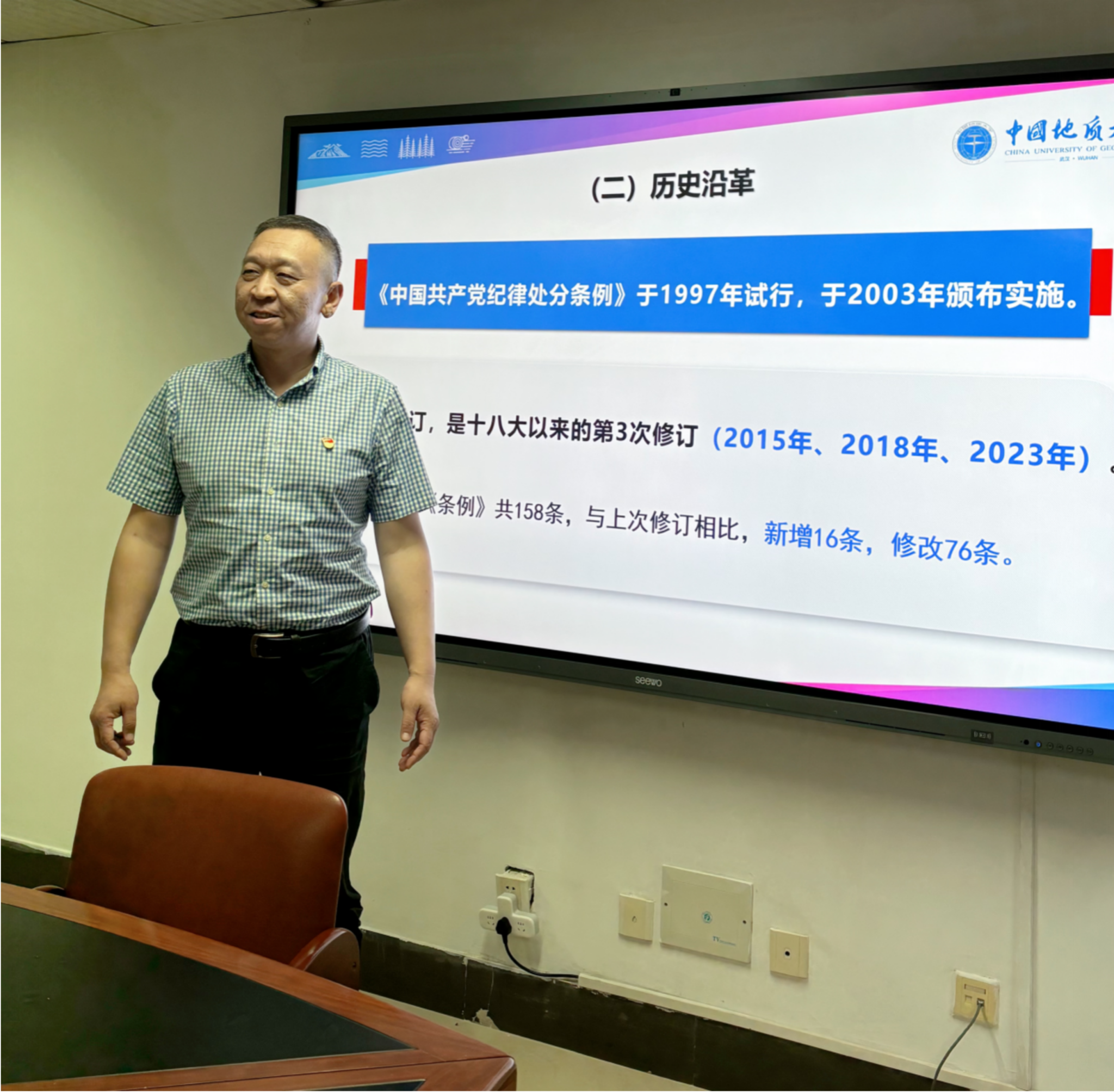 他还结合自身经历,用实例为大家讲解了如何严格遵守党纪党规,严以律己,并引用习近平总书记的要求“坚持勤俭节约、反对铺张浪费”号召大家从自身做起,从身边小事做起。他语重心长地叮嘱研究生同学恪守学术规范、严守学术诚信,把重心放在学习上,踏实求知识,诚信做学问,尊敬师长,团结同学,切实发挥好员工党员模范带头作用和研究生榜样引领作用。